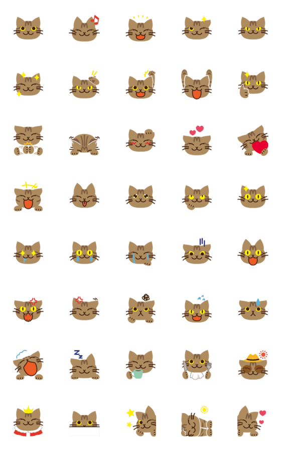 楽しくてイケメンなキジトラネコちゃんの絵文字です。