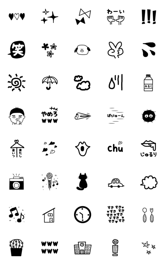 ノートの端についつい描いちゃうような、気軽に使える落書きのような絵文字です。